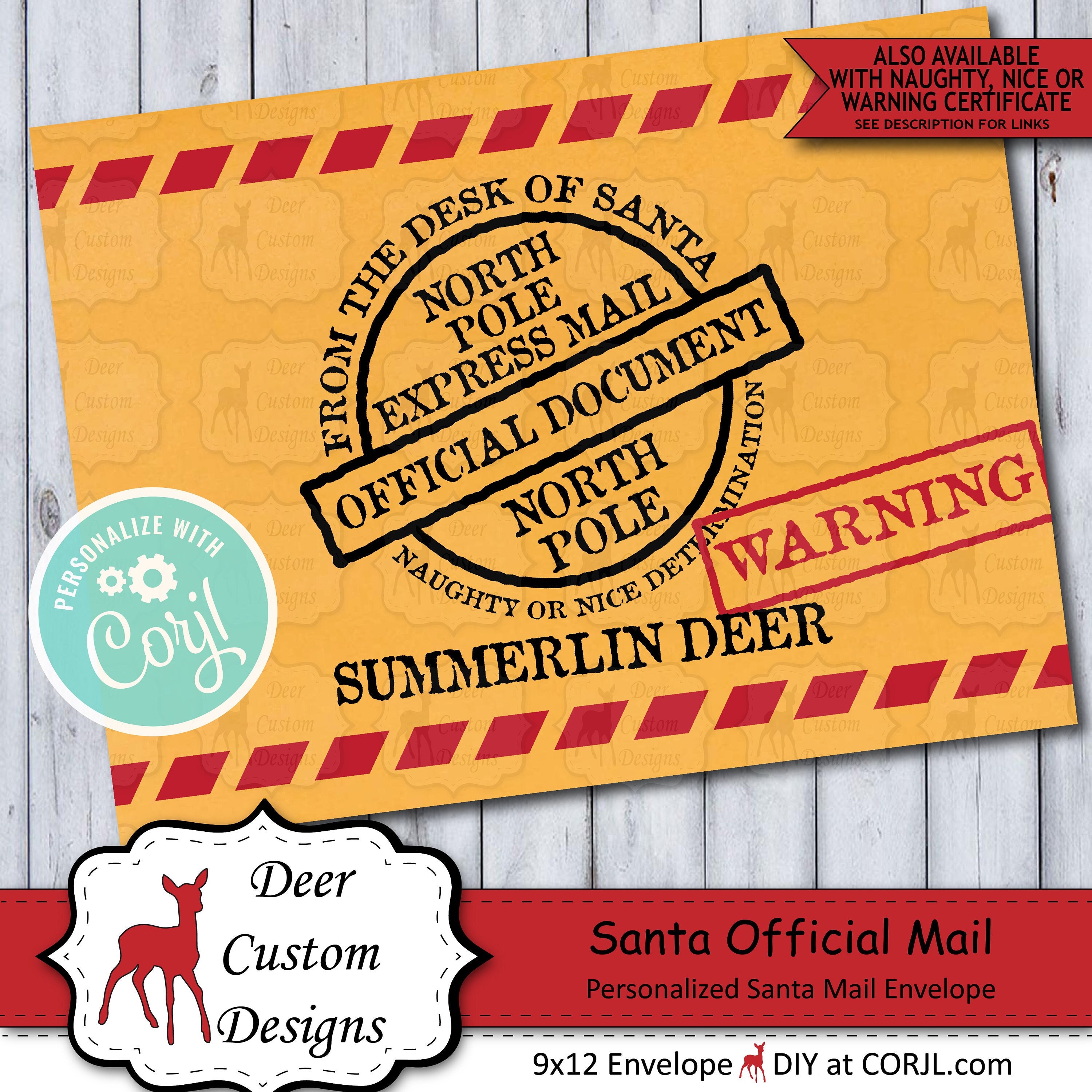 This Santa Official Document Warning Envelope Template is the perfect way to make your kids Christmas even more magical this year! Use this editable template to create an envelope to send Santa's Official Naughty, Nice, or Warning Certificates (see links below) to your children. Kids love getting mail, and this envelope template will make them aware that the big guy is watching and has taken notice of their behavior!